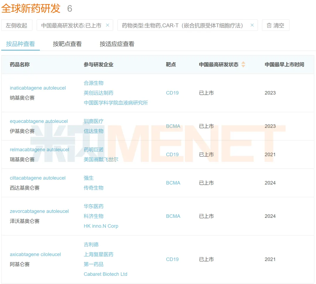 CAR-T疗法的研究如火如荼,作为肿瘤治疗的革命性疗法,CAR-T疗法的商业化进展已成为最受关注的焦点之一。米内网数据显示,目前国内已有6款CAR-T疗法获批上市,其中,阿基仑赛是首款获批上市的CAR-T疗法,用于复发或难治性非霍奇金淋巴瘤(R/R NHL)等。