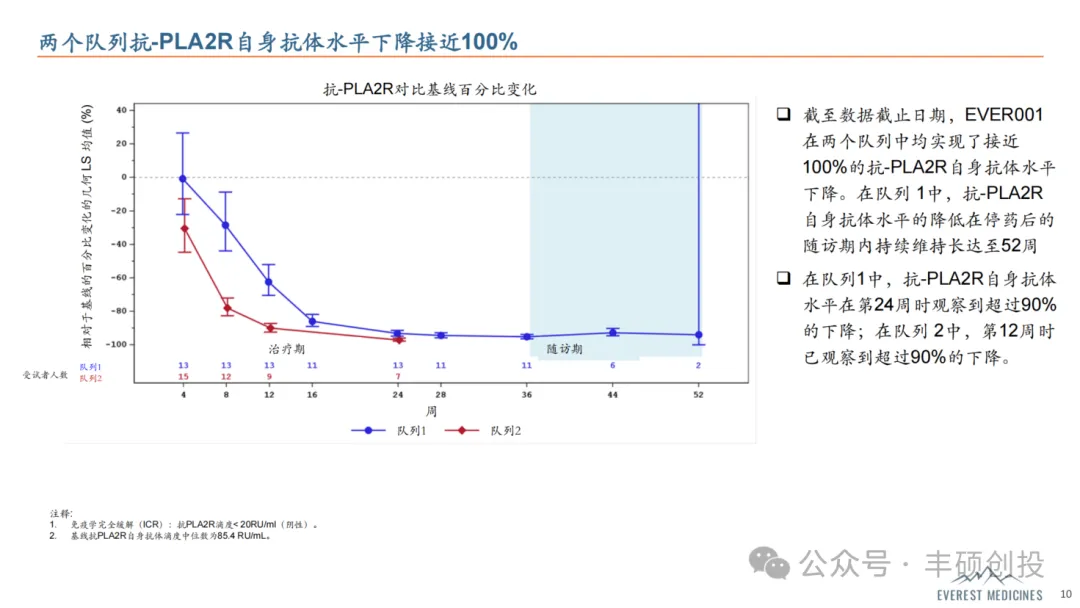 并且在数据截止日期,两组的抗-PLA2R自身抗体减少接近100%。