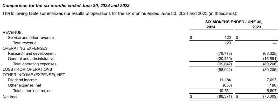 2024年上半年,Keros公司净亏损8840万美元,上半年服务收入12万美元,来自公司与翰森制药的协议,上半年研发费用7880万美元,一般和管理费用为2030万美元。