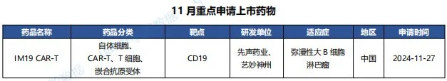 据全球药物分析系统数据库统计,11月全球共27款药物申请上市(包括首次申请和新申请),下表展示部分重点申请上市药物,文末附完整清单,更多药品信息可通过全球药物分析系统进行查看。