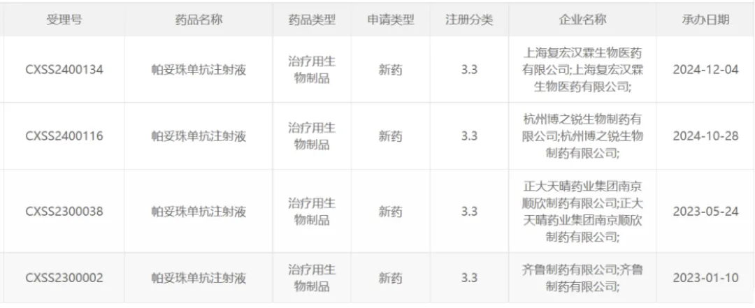 帕妥珠单抗生物类似药如雨后春笋般的涌现,最主要是针对其原研企业罗氏,国内企业的布局将会改变整体的市场格局,最直观的就是能够有效把药品价格打下来。截至目前,国内暂无已通过批准上市的帕妥珠单抗生物类似药,值得期待的是,复宏汉霖、齐鲁制药、博锐生物、正大天晴提交的上市申请已在审批过程中,石药集团、双鹭药业等企业也有所布局。
