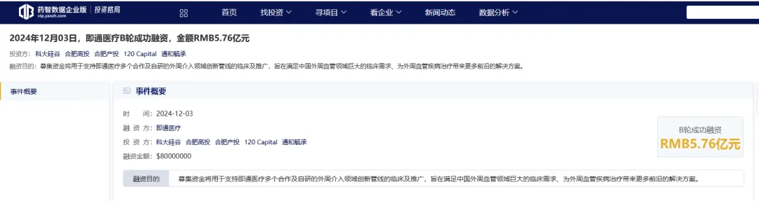 据悉,该轮募集资金将用于支持即通医疗多个合作及自研的外周介入领域创新管线的临床及推广,旨在满足中国外周血管领域巨大的临床需求、为外周血管疾病治疗带来更多前沿的解决方案。