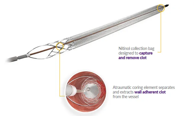 ClotTriever是专为深静脉血栓研发的创新机械取栓装置,2017年2月获FDA批准上市。该产品有三种型号,分别是:ClotTriever导管,能够从6-16 mm的血管中收集和去除血栓(包括血管壁上血栓);ClotTriever BOLD导管,采用缩短的收集支架和HyperClearTM技术,为深静脉取栓提供更快手术间为DVT;ClotTriever XL导管,是ClotTriever系列中最大型号,专为有效清除腔静脉中的血栓而设计。