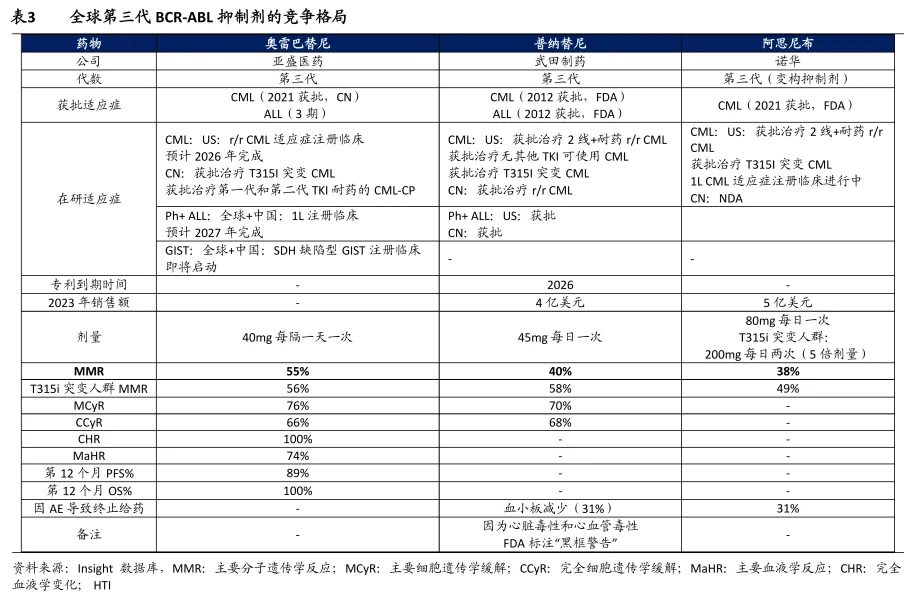 最关键的是,奥雷巴替尼展现出了全球同类最佳潜力,各项指标优于武田的Ponatinib(普纳替尼),后者由于安全性问题被FDA限制临床使用,销售业绩受到影响。