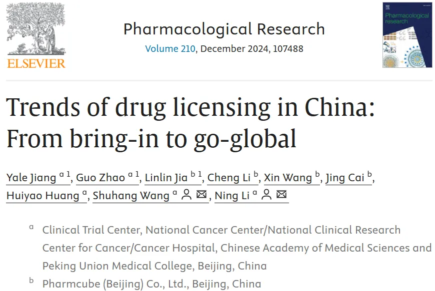 [1] Jiang Y, Zhao G, Jia L, et al. Trends of drug licensing in China: From bring-in to go-global. Pharmacol Res. Published online November 1, 2024. doi:10.1016/j.phrs.2024.107488