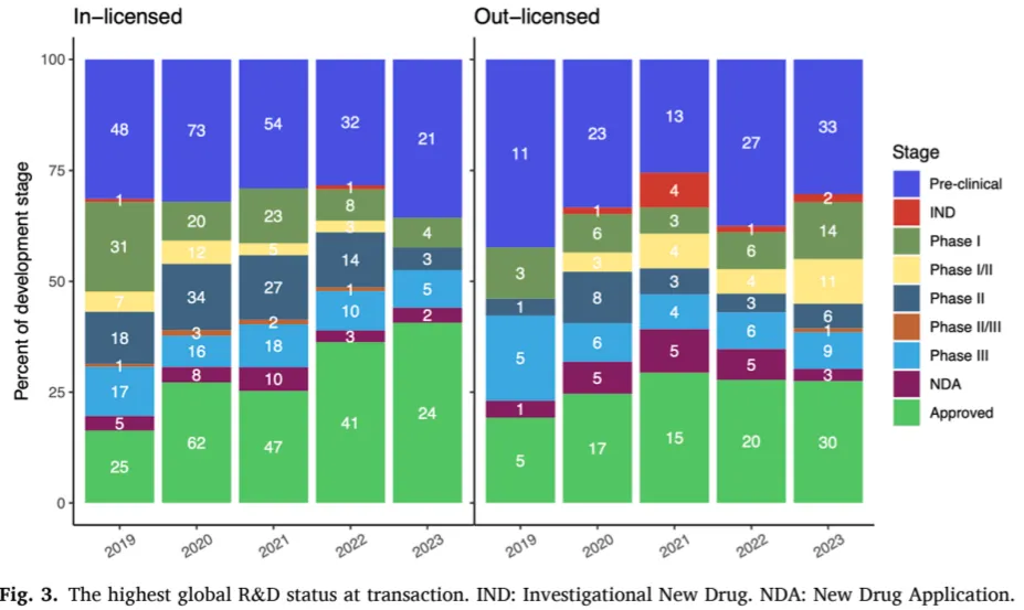 总的来说,中国作为全球第二大医药市场,正吸引着众多外国制药公司进入和开拓。大多数license-in产品处于III期甚至更后的开发阶段,主要是为了在中国快速上市并扩大市场份额。相比之下,license-out产品则处于更早期、更具创新性的阶段,呈现出从“引进来”到“走出去”的趋势。