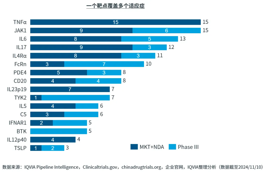 图6:中国自免类靶向药物靶点和适应症布局