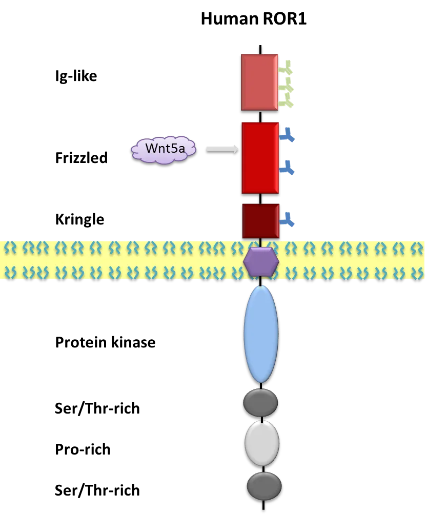 ROR1是一种典型的肿瘤胚胎蛋白,通常只存在于胚胎细胞的早期发育阶段,而在成体细胞中一般不表达,但是它被癌细胞利用后会促进癌细胞的生长和扩散。目前ROR1已被发现在多种肿瘤中高表达,包括各类白血病、非霍奇金淋巴瘤、乳腺癌、肺癌及卵巢癌。有介于这种在肿瘤和正常组织之间的高度差异化表达,ROR1成为一种潜力靶点。围绕ROR1的开发汇集了CAR-T,双抗/多抗,ADC等多种技术路线。
