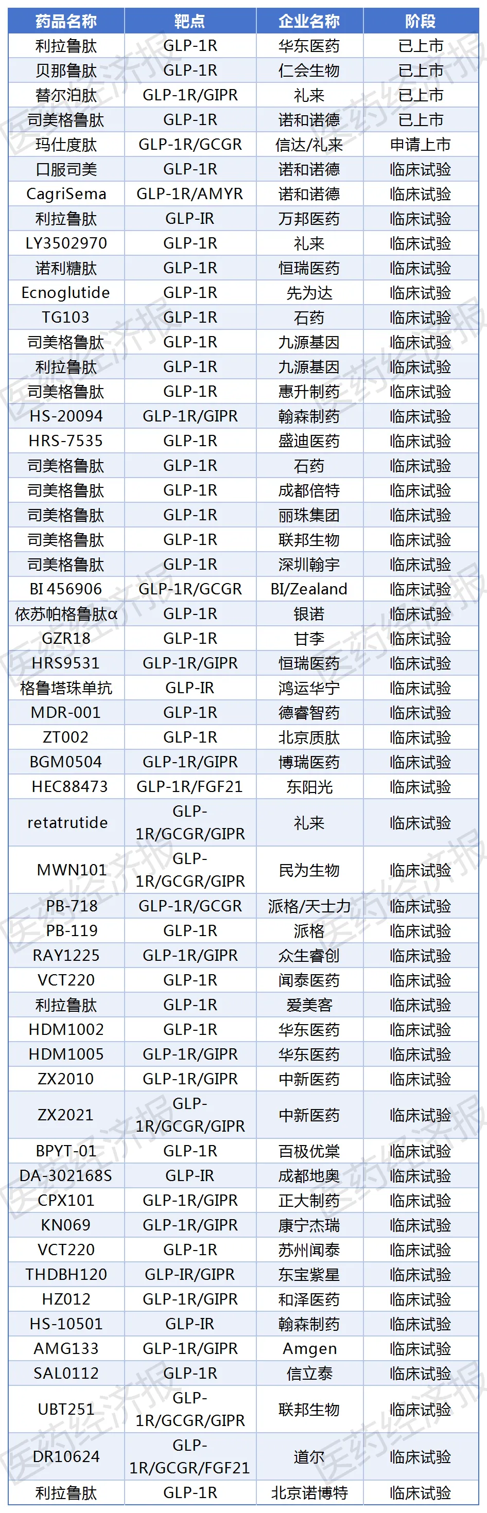 面对这一火爆市场,国内诸多企业纷纷加码布局。华东医药、信达生物、恒瑞医药和银诺医药等实力新星,或从给药频率、药物靶点,或从生物类似药角度入手,力求在GLP-1市场实现弯道超车。
