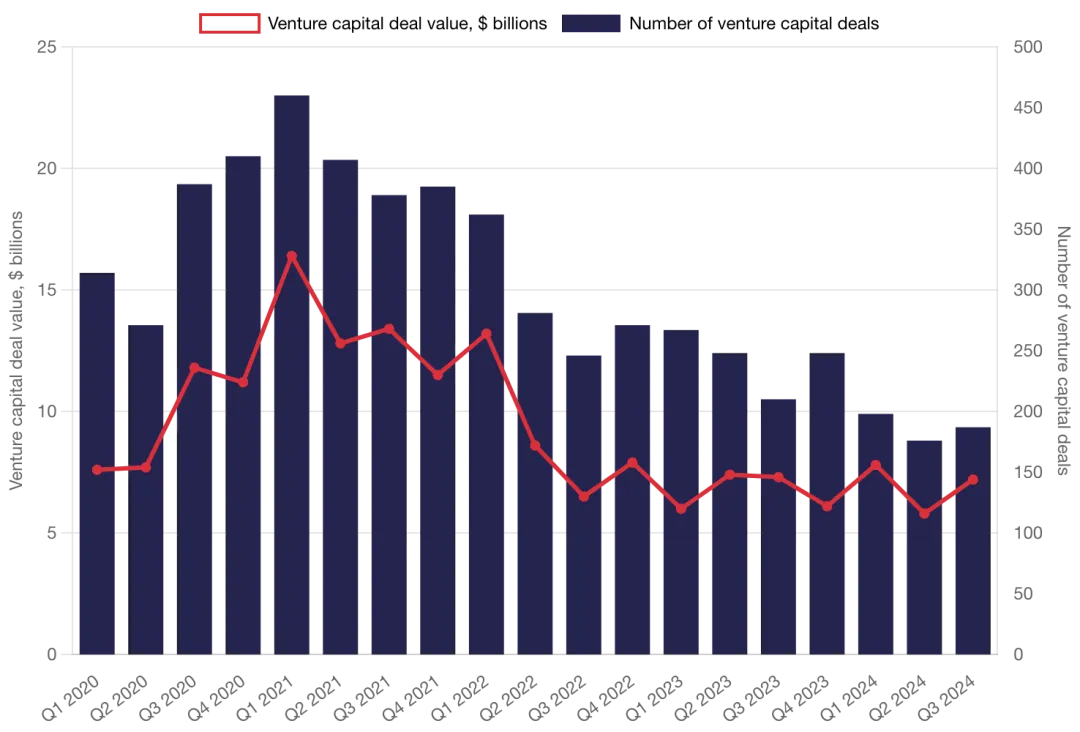 2020、2021年后,生物制药风投活动开始放缓,2024年尚未复苏