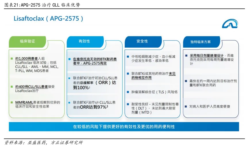 亚盛医药自研的APG-2575(Lisaftoclax)是新型口服Bcl-2选择性抑制剂,在多种血液瘤和实体瘤治疗领域具备广阔的单药和联合治疗潜力,具备全球BIC潜质。