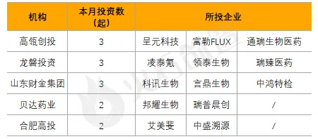 机构榜:5家机构投资多个项目