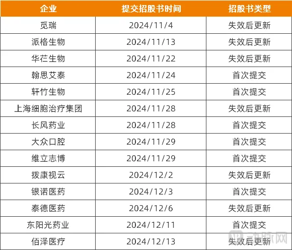 2024年11月以来在港股提交招股书的企业,资料来源:披露易