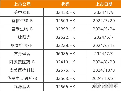 2024年以来港交所上市的医疗健康企业,资料来源:披露易