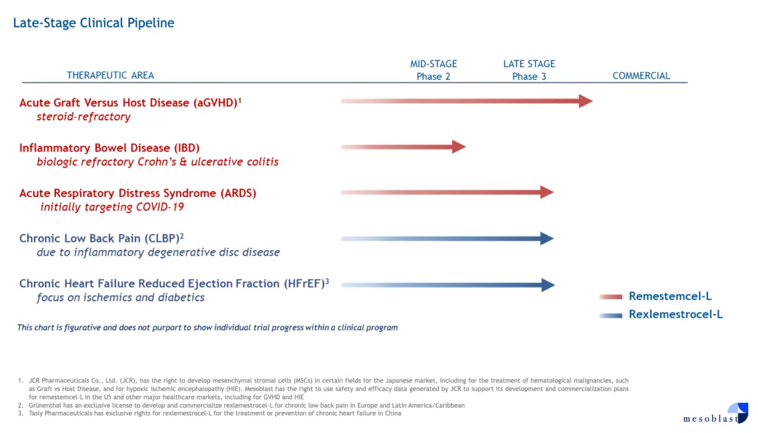 “我们将继续与FDA密切合作,以获得我们其他后期产品的批准,包括用于心血管疾病的Revascor和用于炎症疼痛适应症的Remestemcel-L,以及扩大Ryoncil在患有炎症的儿童和成人中的适应症。”Mesoblast在公告中写道。