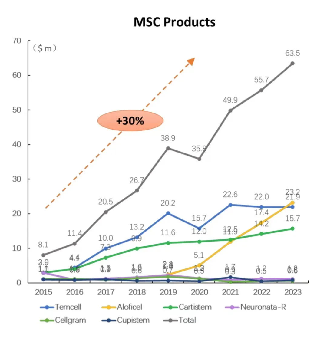 彼时,Prochymal在加拿大和新西兰成功上市,用于GVHD儿童患者,成为全球首个获批的异体骨髓MSC疗法。次年,Mesoblast从Osiris收购Prochymal,并将其更名为Remestemcel-L,由此开启了新的市场开发。