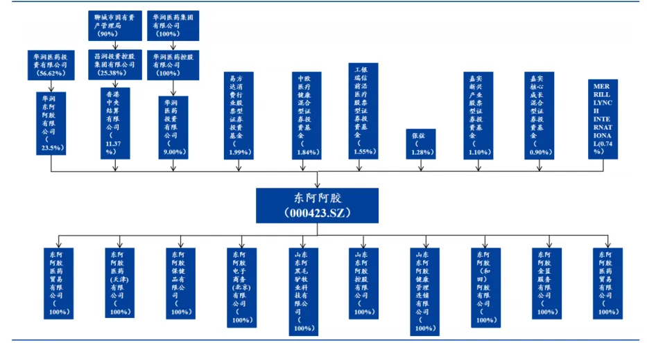 当年,华润系便正式和聊城市国资局签订合资协议,组建华润东阿阿胶有限公司,持有东阿阿胶29.62%股权。华润持有“华润东阿阿胶”56.619%股份,聊城市国资委持股43.381%。换算比例下来,华润间接持股东阿阿胶16.77%。