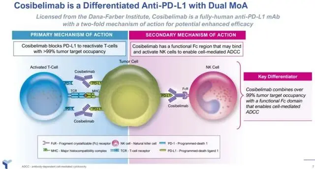 Unloxcyt是一种完全人源化、具有高亲和力的单克隆抗体,可直接与PD-L1结合,从而阻断其与PD-1以及B7.1受体的相互作用,进而除去PD-L1对CD8阳性T细胞的抑制效果,恢复其毒杀性T细胞反应。之前的新闻稿指出,Unloxcyt与目前上市的PD-1和PD-L1抗体的潜在差异在于它具有持续的、超过99%的目标肿瘤占位率(tumor occupancy),可以重新激活抗肿瘤免疫反应,此外它还具有能够诱导抗体依赖性细胞介导的细胞毒性(ADCC)的功能性Fc结构域,从而在某些肿瘤类型中发挥更为强大的疗效。