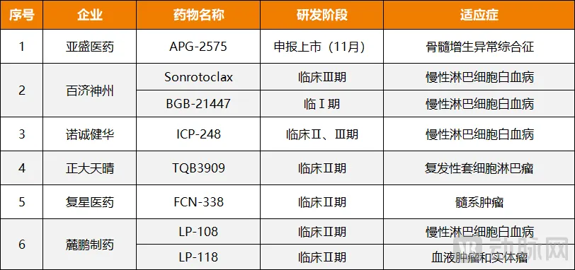 而除了亚盛和百济,其他国产Bcl-2抑制剂也在猛追进度,目前基本都来到了临床Ⅱ期,并且都具备成为best-in-class的潜力。