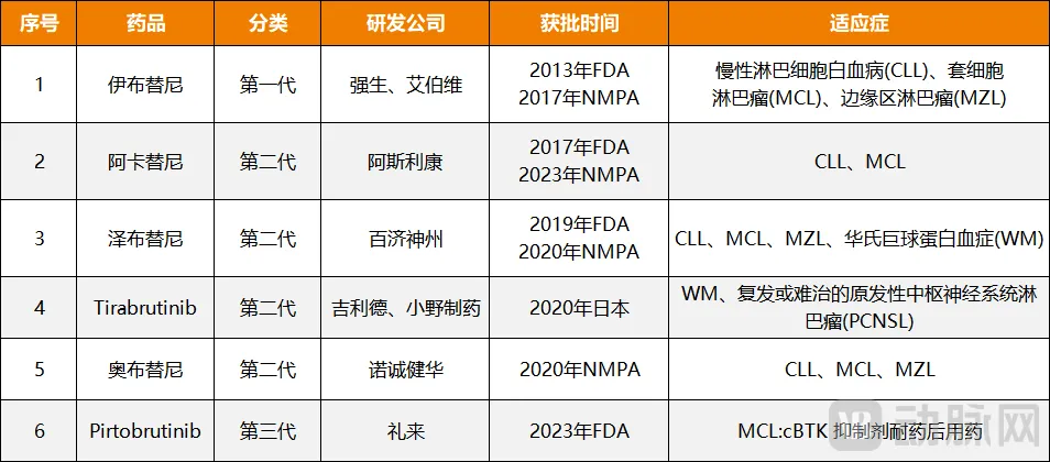 图4.目前全球已获批上市的6款BTK抑制剂情况