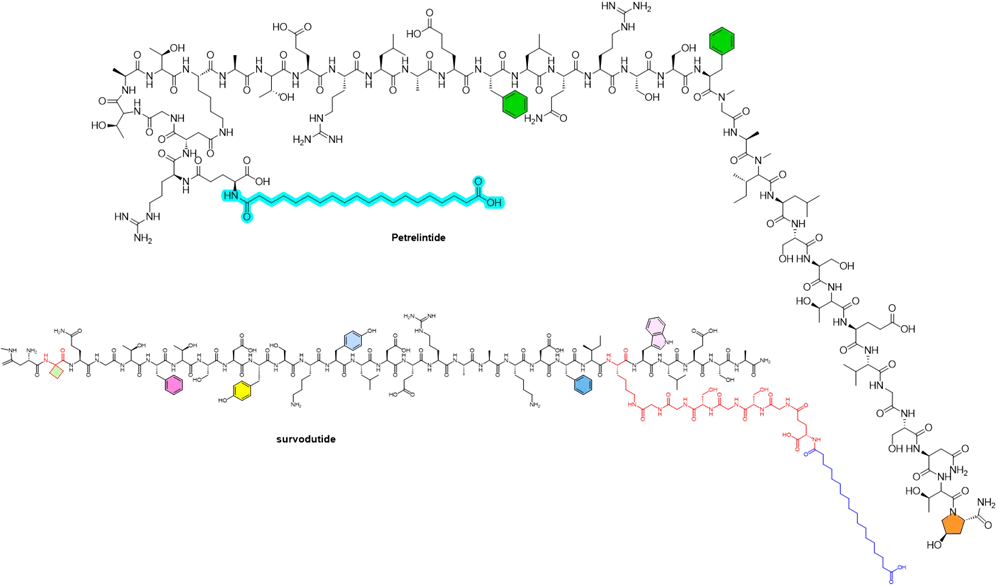 图1. Petrelintide与survodutide化学结构