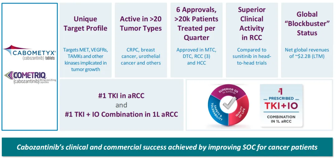 卡博替尼不是美国市场上第一个酪氨酸激酶抑制剂(TKI),但它是TKI中的佼佼者——晚期RCC(肾细胞癌)中排名第一的处方单药TKI和一线晚期RCC中排名第一的TKI+IO(酪氨酸激酶抑制剂+肿瘤免疫治疗)组合。
