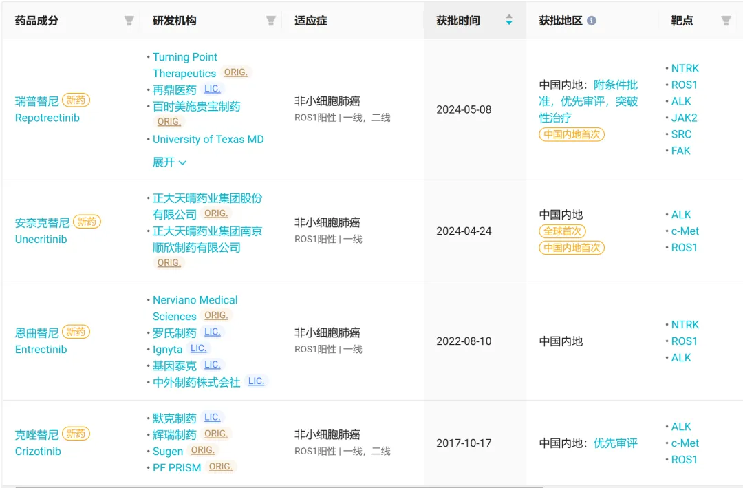 国内已获批用于 ROS1+ NSCLC 的新药们