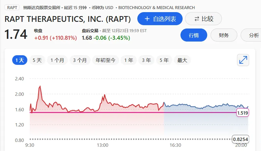 此外,RAPT Therapeutics还在周一宣布了1.5亿美元的私募配售计划。预计将于12月27日左右完成。