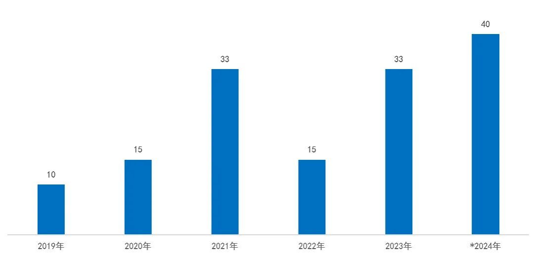 图表:2019年~2024年*NMPA批准的1类创新药*数量