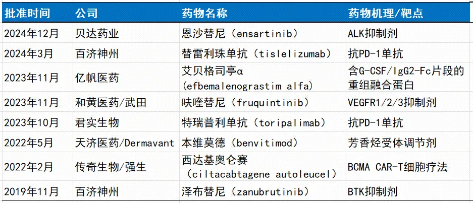 从2019年至今,美国FDA和欧洲EMA已经批准了多款由中国生物医药公司研发的创新药。