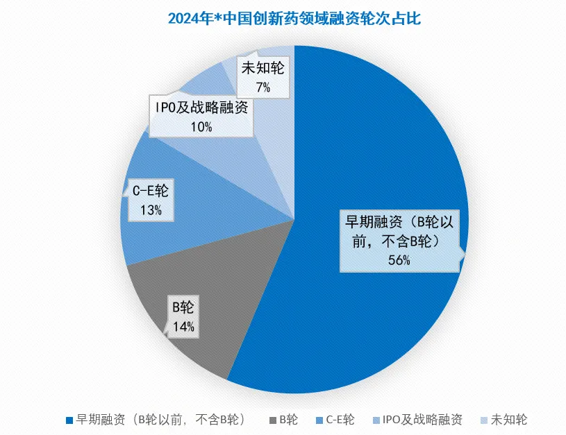 此外,尽快2024年融资环境面临挑战,但仍有一批优秀的企业逆流而上,在这一年获得了融资。根据即刻药数,截至2024年12月20日,中国生物制药领域融资事件数量年度共计超过180起,涉及约170家公司。其中,早期融资(B轮以前,不含B轮)融资事件106起,占总数的一半以上。