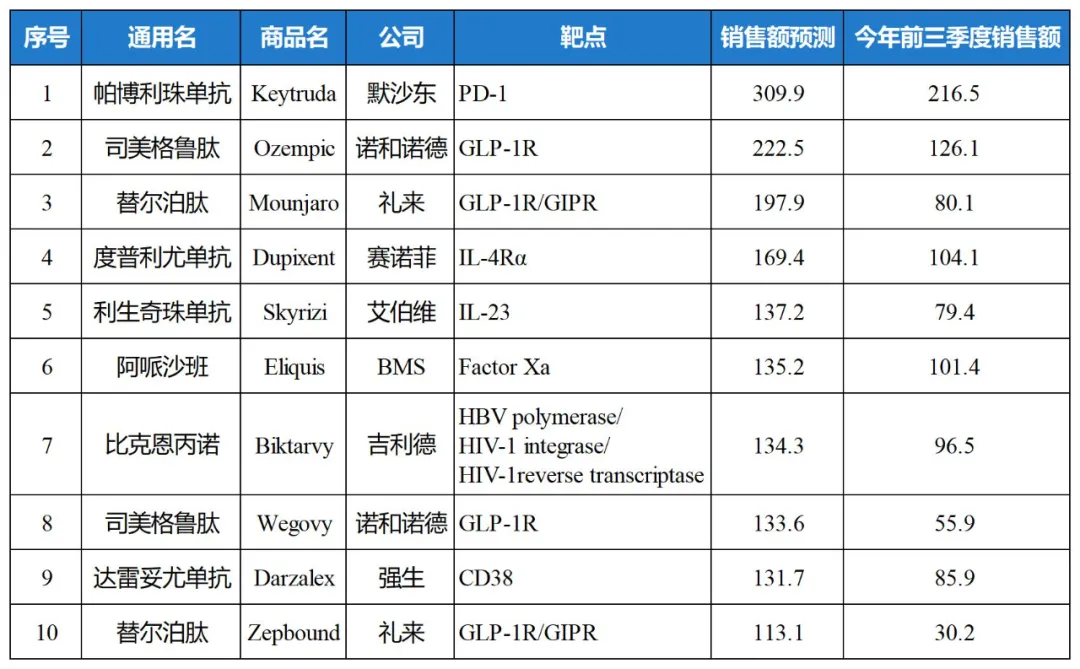 注:数据来源于《Top product forecasts for 2025》,希望阅读原文可点击文章左下角阅读原文跳转,表格由医药魔方整理。