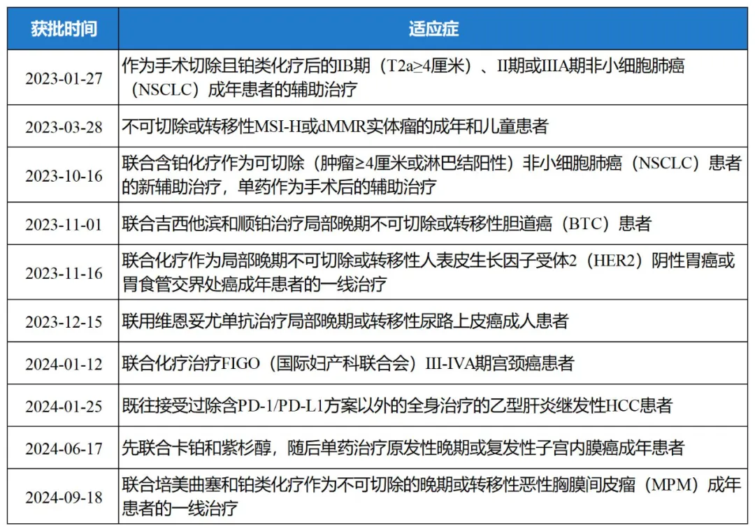 Keytruda自2023年至今新增的适应症