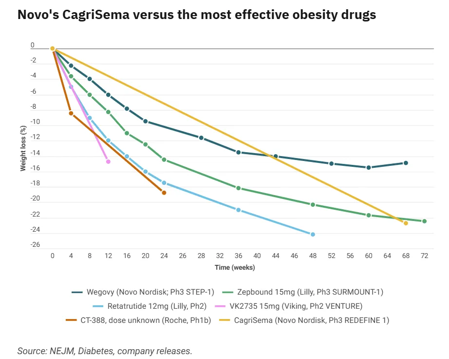 图1:诺和诺德的CagriSema与其他肥胖症药物的比较