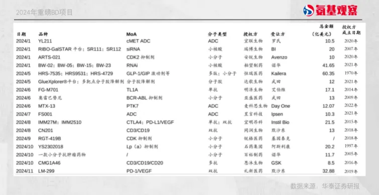 根据华泰证券统计的数据,截至11月18日,国产国产创新药对外BD数量达71起,同比增长16%,总金额达405亿美元,同比增长54%。