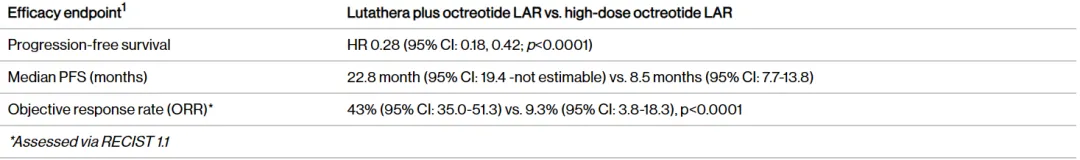 在III期NETTER-2试验中,Lutathera联合奥曲肽显著延长新诊断的2级和3级晚期GEP-NETs患者的中位PFS至22.8个月,而高剂量奥曲肽单药组的中位PFS为8.5个月。