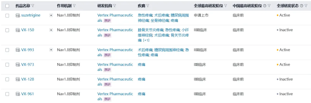 也正是因为相当看好该靶点的潜力,Vertex大举投入了NaV1.8抑制剂的研发,经历VX-128、VX-150、VX-961多番试错仍坚持继续探索。