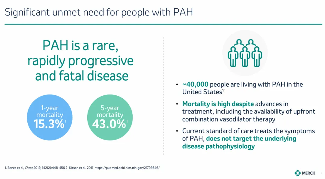 PAH是一种严重的进展性疾病,发病率和死亡率都很高,其临床表现为肺部小动脉增生性重塑和管腔逐渐狭窄。据估计,2021年全球约4000万例PAH患者,5年死亡率约为43%。目前,市场上现有的PAH疗法可通过促进肺血管扩张来缓解患者病情,但无法从根本上解决肺血管重塑的问题。