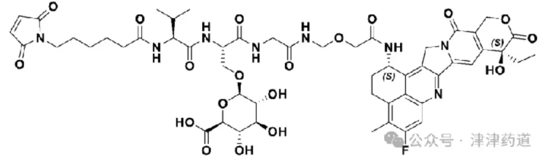 具体的这条B7-H3 ADC管线的payload-linker究竟如何?根据津津药道的推测,大致如下图所示,主要还是linker上亲水侧链的添加,笔者水平有限目前只能看出亲水性。而根据津津药道的推测,实现多剪切位点串联增加肿瘤特异性及剪切效率,通俗来说,让子弹打得更加精准,提高疗效的同时也提高了安全性。