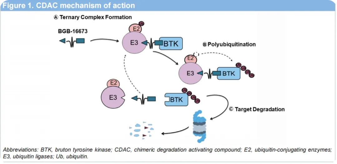 PROTAC想必已经在过往有过较多的介绍:该类中小分子一边链接E3连接酶,一边链接需要降解的靶细胞,然后通过26S蛋白酶体将其降解。百济CDAC平台的差异性在于可最大程度地降低不必要的免疫调节药物 (IMiD) 活性,这种活性是其他一些降解药物的典型特征,这些药物会与更常见的 E3 连接酶结合。