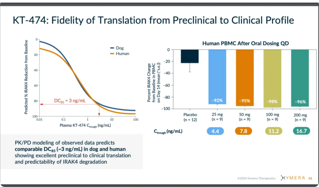 另一条有意思的CDAC管线是BGB-45035,靶向IRAK4,自免领域方兴未艾的新靶点,之后将用于治疗中重度特异性皮炎。相关的同靶点PROTAC分子中,披露资料较多的是Kymera Therapeutics的KT-474,该药2020年被赛诺菲看中,与Kymera共同开发KT-474。