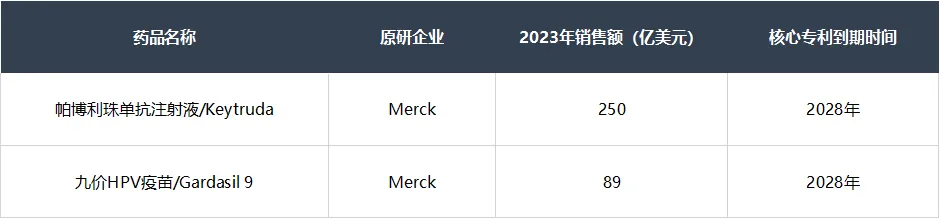 默克在2028年将面临K药和九价HPV疫苗的专利悬崖,两者合计销售损失达339亿美元,占2023年公司总营收的56%。