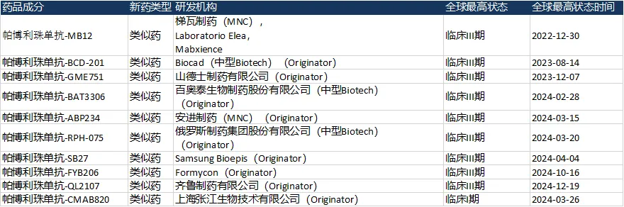 全球帕博利珠单抗生物类似药临床进展(来源:Insight)