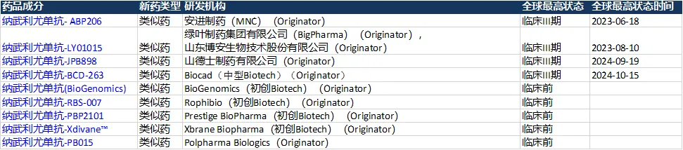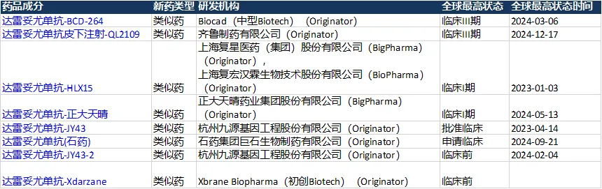 全球达雷妥尤单抗生物类似药临床进展(来源:Insight)