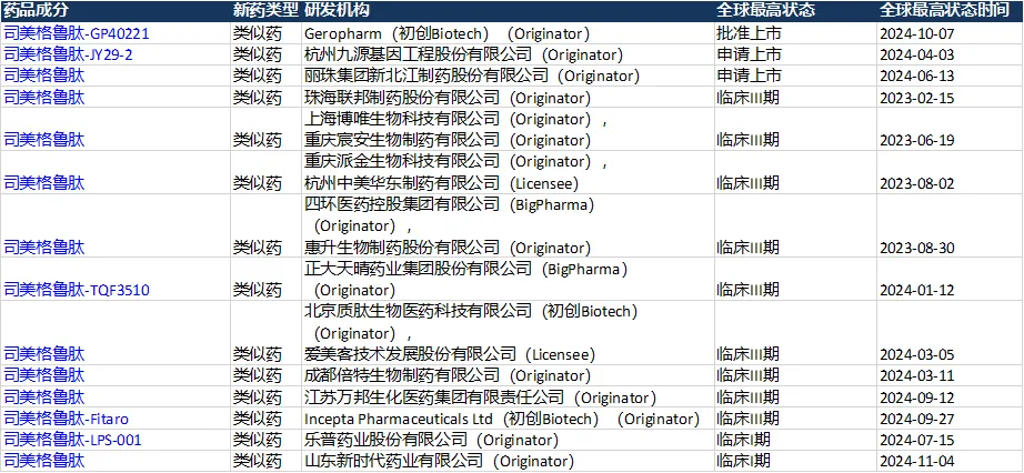 全球司美格鲁肽生物类似药临床进展(来源:Insight)