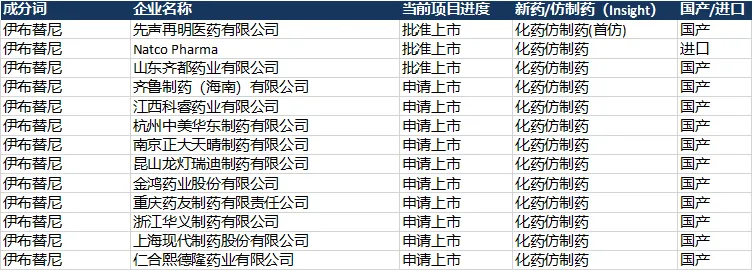 国内伊布替尼化学仿制药临床进展(来源:Insight)