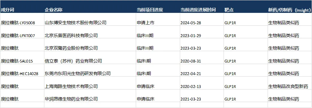 国内度拉糖肽生物类似药临床进展(来源:Insight)