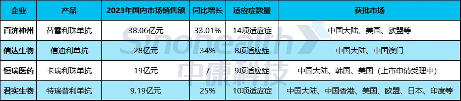 而作为较早获批,已占据一定市场份额的PD-1产品,信达生物的信迪利单抗与君实生物的特瑞普利单抗、百济神州的替雷利珠单抗、恒瑞医药的卡瑞利珠单抗被称为“国产PD-1四小龙”。