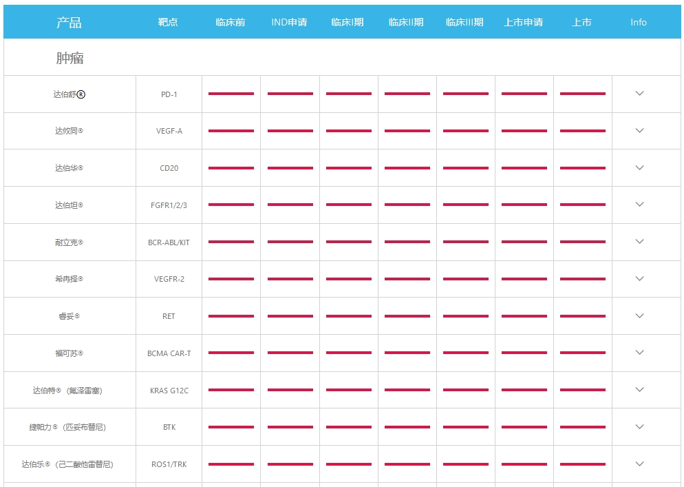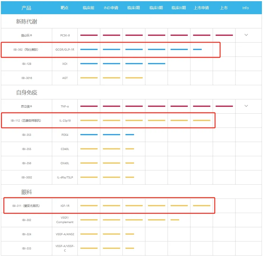 附信达生物管线情况(来源:企业官网):