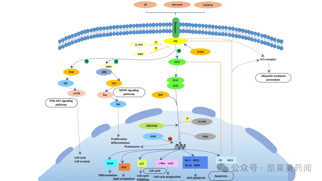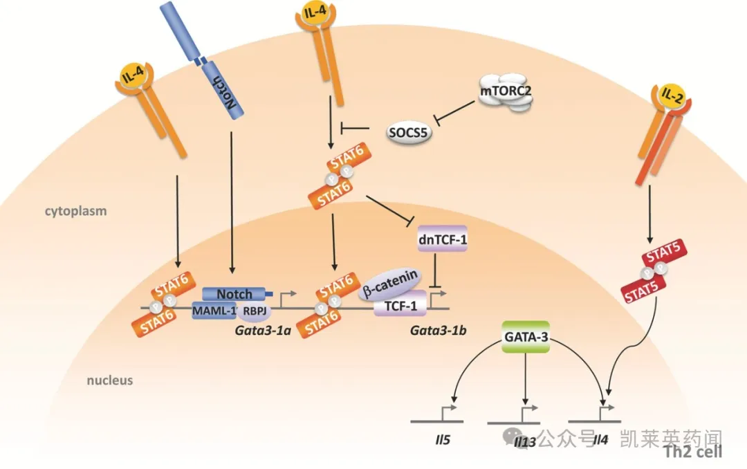 的激活。除此以外,作为一种关键的节点转录因子,STAT6选择性介导IL-4和IL-13的下游信号,为2型炎症性疾病开发提供了可能。